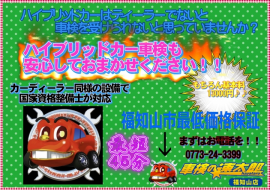 速太郎福知山店では、ハイブリッドカーの車検もおこなっております(^o^)